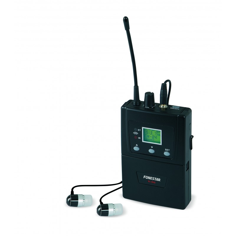 CARACTERÍSTICAS | Receptor inalámbrico de petaca monitor in ear de 40 canales seleccionables PLL UHF 863-865 MHz. Recepción con modulación FM mono. Para utilización con el sistema inalámbrico FONESTAR de monitor in ear. Posibilidad de utilizar en un mismo canal múltiples receptores (RI-840) con un transmisor. Para utilizar con los modelos MSHT-40M-863, MSHT-41P-863, MSHT-42S-863, MSHT-43C-863, MSHT-44X-863 y MSHT-45P-863. | |